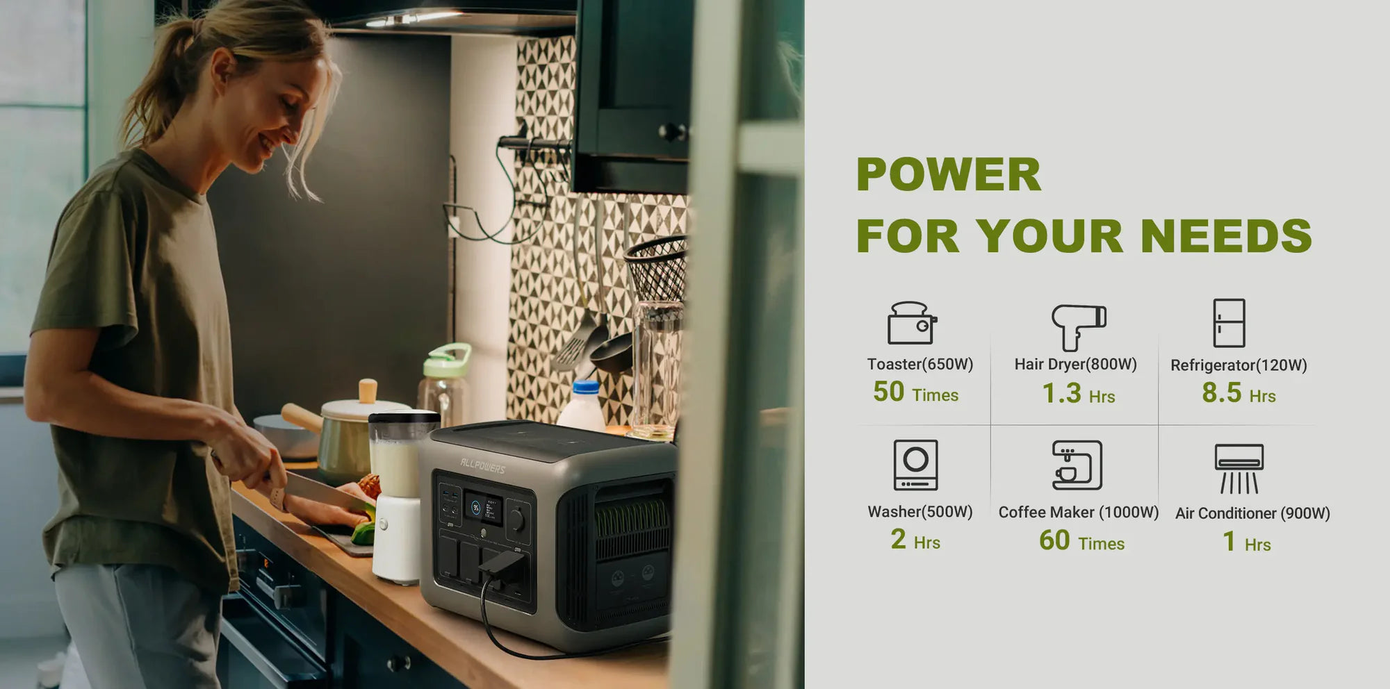 As the companion battery pack to R1500 , B1000 has a capacity of 1152Wh,Compatible with R1500 for a maximum of 4,608Wh capacity (1*R1500+3*B1000) .enough to get you through a severe power outage.