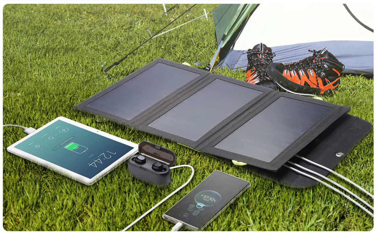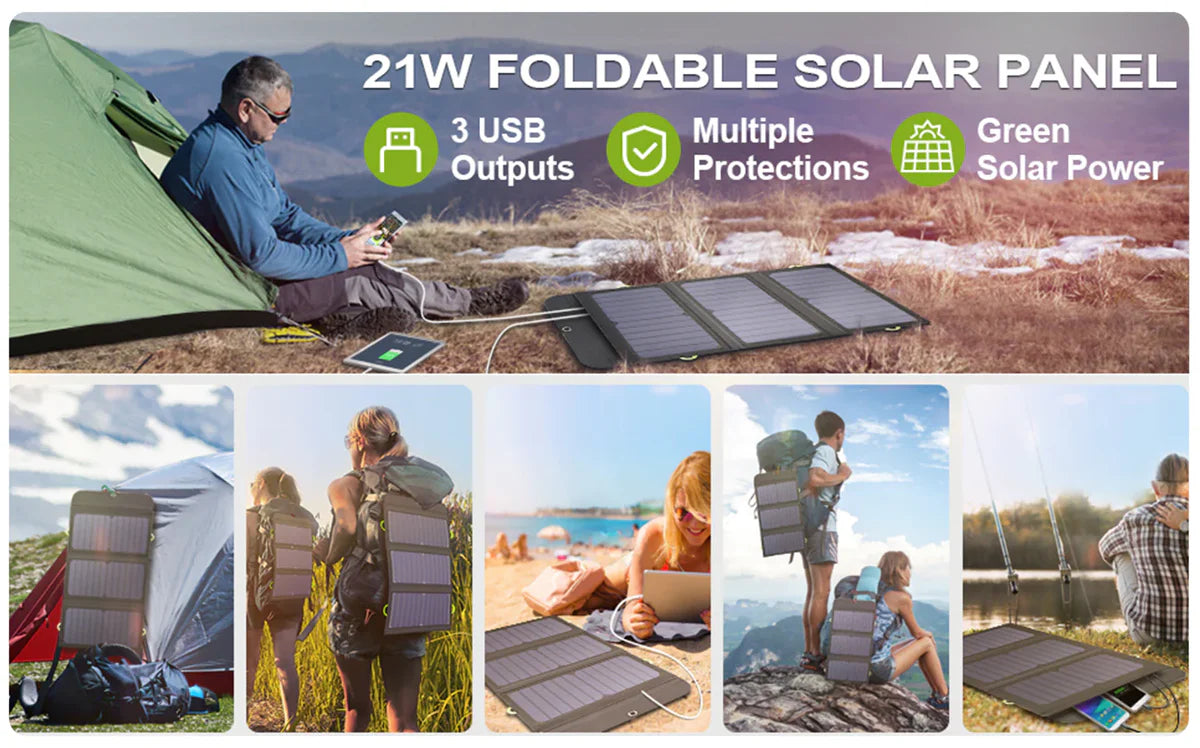 Com uma elevada capacidade de 10.000 mAh, o painel solar pode ser utilizado como carregador portátil. Em caso de falha de energia, pode recarregar com energia solar ou carregador de parede (existe uma microporta de entrada), ideal para uma viagem de uma semana.